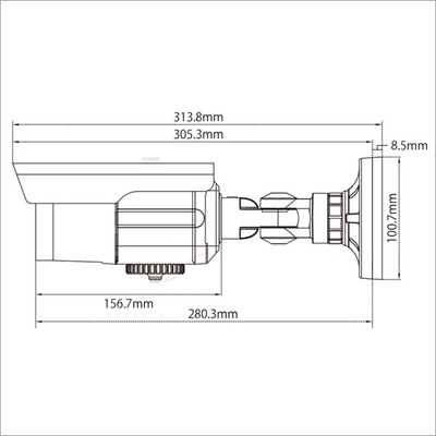 | 寸法 | カメラ本体(ブラケット含) W280.3mm x H74.0mm x D77.0mm ブラケットφ:100.7 |